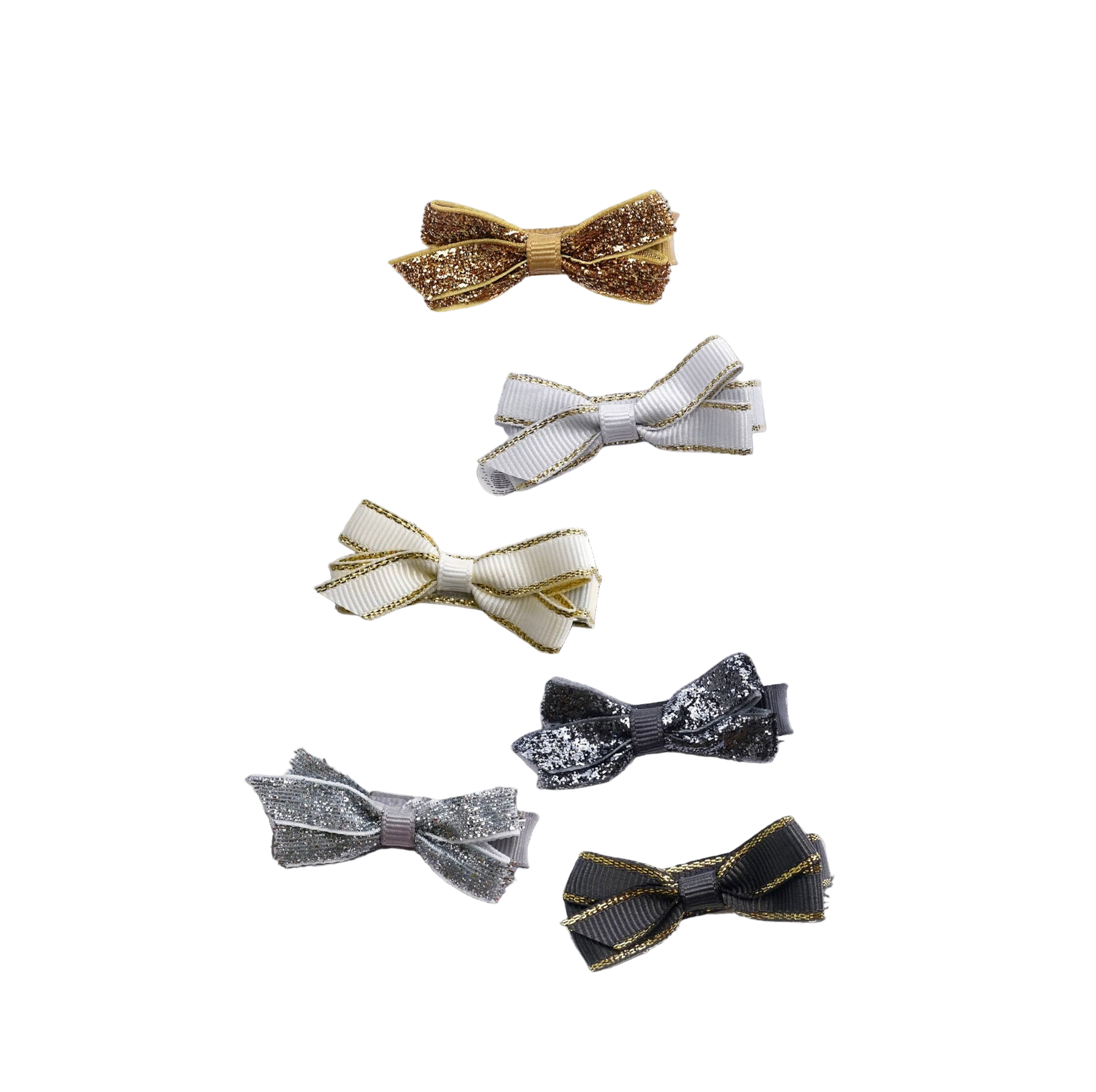Mini Bow Hairclip Gift Set - Gold Edge & Glitter